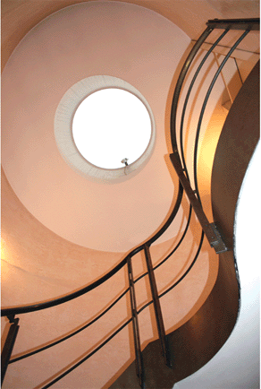 SBARCO FINALE DELLA SCALA A LIVELLO DEL SECONDO PIANO. ANCHE GLI ZOCCOLINI DI FINITURA SONO IN BRONZO