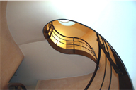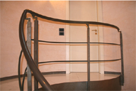 REALIZZAZIONE DI UNA RINGHIERA PER UNA SCALA D'INTERNI CHE PARTE DAL PIANO SEMIINTERRATO FINO AD ARRIVARE AL PIANO SECONDO. LA RINGHIERA E' COSTITUITA DA UN COSCIALE IN LAMIERA DI BRONZO PANTOGRAFATO SP. 5 MM. I MONTANTI SONO IN DOPPIO PIATTO, DOTATI DI SUPPORTI ESEGUITI DI FRESATURA PER L'AGGANCIO DEL CORRIMANO. QUEST'ULTIMO E' REALIZZATO IN TUBOLARE DI BRONZO. TUTTA LA STRUTTURA E' AVVITATA. | IL COSCIALE PANTOGRAFATO SEGUE PERFETTAMENTE LA SAGOMA DELLA SCALA. | | | | |