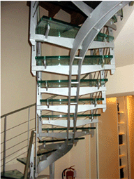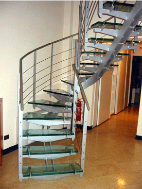 PROGETTAZIONE E REALIZZAZIONE DI SCALA A DOPPIA ELLISSE.LA STRUTTURA E' AUTOPORTANTE, GRAZIE ALLA MONOTRAVE CENTRALE IN FERRO VERNICIATO. MONTANTI DEL PARAPETTO IN PIATTO DI FERRO, TRA I QUALI CORRONO IN ORIZZONTALE I CORRENTINI DI PICCOLO DIAMETRO. A COMPLETARE LA SCALA, GRADINI IN CRISTALLO. | | | | |