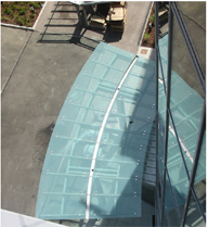 PENSILINA D'INGRESSO IN ACCIAIO E VETRO, CON UN UTILIZZO DI ROTOULLE COME SISTEMA DI TENUTA DEL VETRO | | |